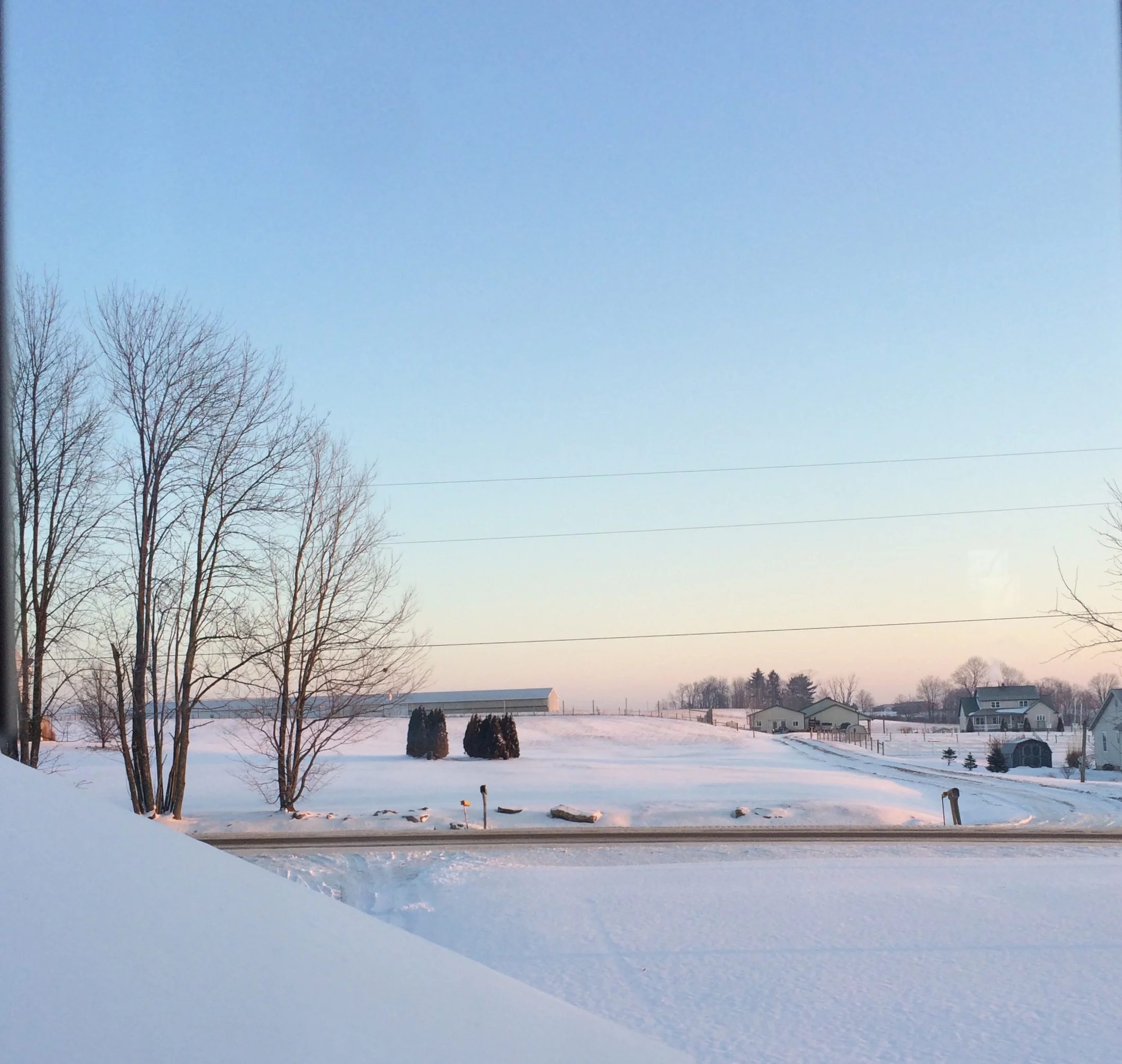 This morning I woke up and saw one of my favorite scenes in the winter. A fresh layer of snow, making everything white, along with a heavy frost covering every last thing with frosty- diamond like white, and subtle pastels on the horizon. Pastels in the sky are a reminder to me of God's goodness and his promises in my life. I've seen a lot of them in the past two years and this morning it took my breath away. I thought to myself, I should've known that God would take this day for his own ( being that Valentine's fell on the Sabbath :) ).